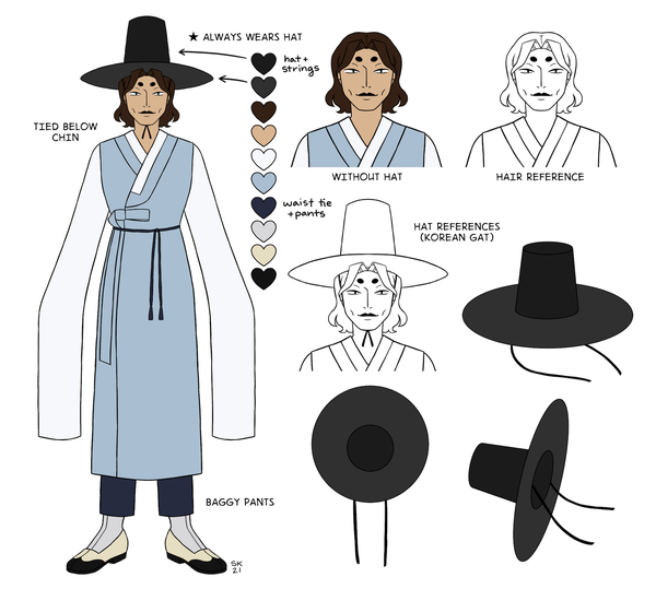 The first concept for Water Rose was created in November 2020, which originally not drawn with the intention of conceptualizing my undergraduate senior capstone. I simply wanted to see two of my Korean characters in an ancient romantic fantasy setting reminiscent of their cultural background.